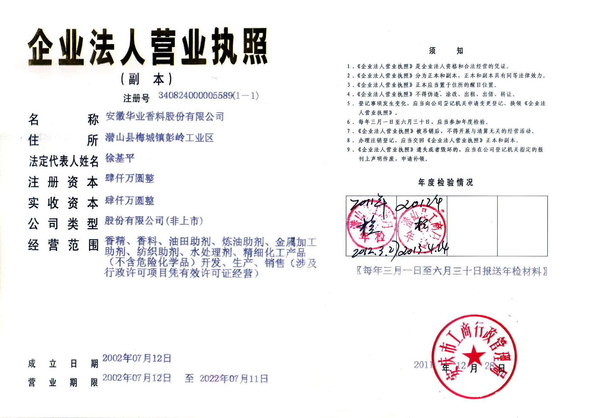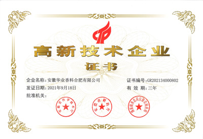 2011年公司改制更名成立安徽華業香料股份有限公司