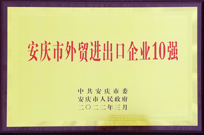 安慶市外貿進出口企業10強 2022.3