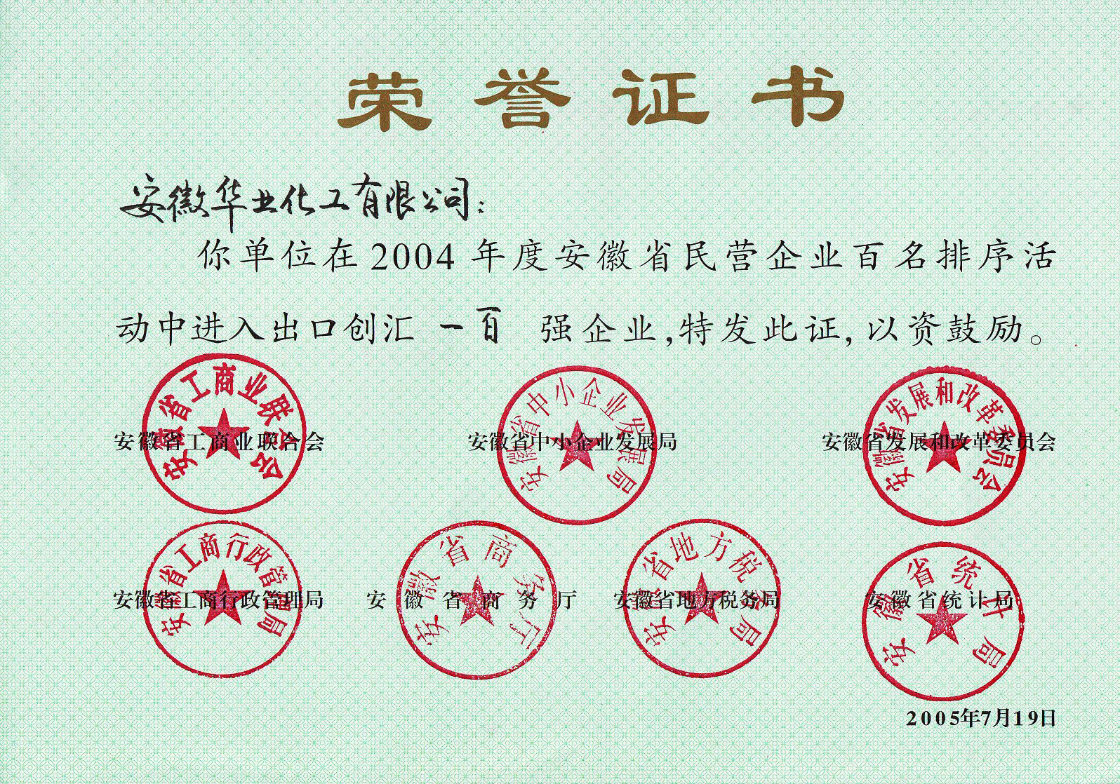 2004年丙位內酯首次出口國際市場,并獲安徽省民營企業出口創匯100強