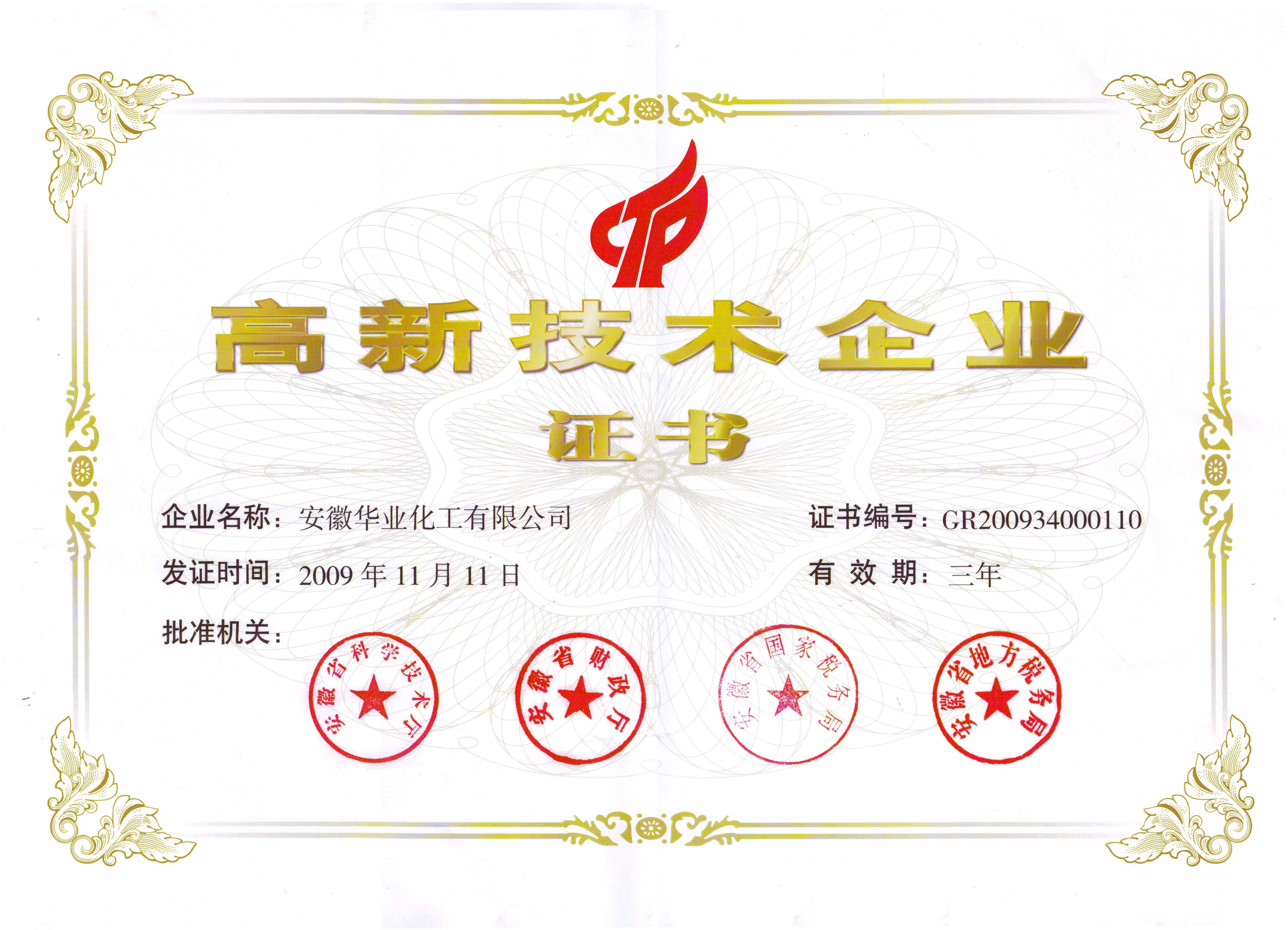 2009年首獲安徽省高新技術企業