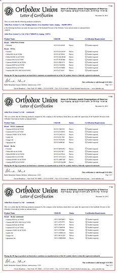 2009年通過美國KOSHER猶太潔食證認證