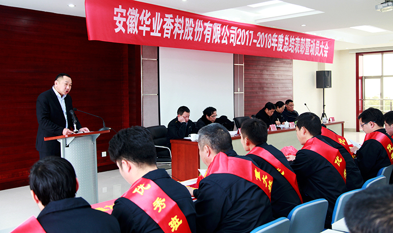 會上,華文亮董事長發表了重要講話,他充分肯定了公司2017年經營管理所取得的良好業績,并向全體員工表示感謝!對新一年工作,董事長提出了三點要求:一要善于把控三“勢”。即明勢不惑,乘勢而上,因勢而為。企業要深刻認識十九大報告中“貫徹新發展理念,建設現代化經濟體系”,支持民營企業發展和實體經濟這一大勢,保持戰略定力,不斷加強學習,以持續創新為抓手,專注內酯香料這個細分市場做精做細。同時華業作為外向型企業還必須搶抓經濟全球化深度融合這一機遇,要以全球化視野深入開展國際業務合作,要提高站位,向高處攀、與強者比、和快的賽,倒逼自己最大限度發揮優勢和潛能。