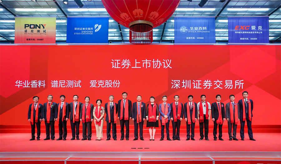 安慶市市長陳冰冰、深圳證券交易所副總經理李鳴鐘、省地方金融監管局副局長程鋼、中國香料香精化妝品工業協會理事長陳少軍、安慶市政府秘書長江興代、潛山市領導張勁松、梅耐雪、黃銀枝、郭玉晟、余永燦等出席上市儀式。應邀出席上市儀式的嘉賓還有公司大客戶、供應商代表及上市中介機構相關人員。