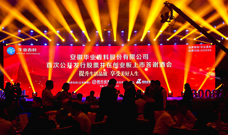 此前,在9月15日晚,華業香料還在深圳星河麗思卡爾頓酒店舉行了上市答謝酒會。香料香精行業協會領導、公司大客戶、供應商代表及上市中介機構相關人員應邀參加酒會。