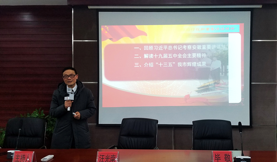 專題報(bào)告會以“奮進(jìn)新時(shí)代,開啟新征程”為題,深入解讀十九屆五中全會主要精神;學(xué)習(xí)習(xí)近平總書記考察安徽重要講話精神;介紹“十三五”我市輝煌成果。圍繞深刻認(rèn)識我國進(jìn)入新發(fā)展階段的重大意義和重要特征、牢牢把握構(gòu)建新發(fā)展格局的戰(zhàn)略構(gòu)想和重要著力點(diǎn)等內(nèi)容進(jìn)行了解讀。