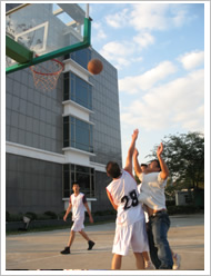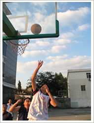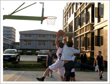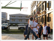 為提高公司籃球隊的技能與水平,應潘鋪中學邀請,由公司工會組織了此次籃球友誼賽,雙方對此都比較重視,潘鋪中學派出了以校長、副校長及體育老師為代 表的強大陣容,華業公司選出了以生產部經理吳旭為代表的愛好籃球運動的員工組成參賽隊伍。整個比賽過程,大家的興致都很高漲,比分咬得也很緊,大家互相配 合、團結協作、頑強拼搏,打出了一個又一個高潮,也贏得了場外拉拉隊的喝彩和加油。