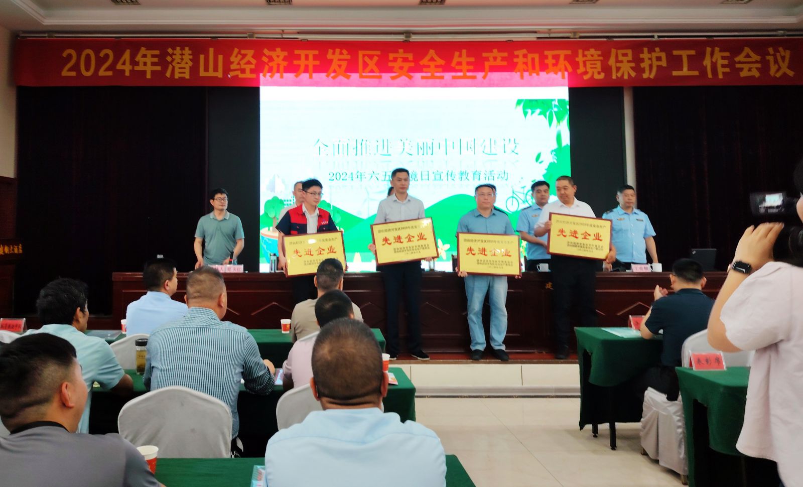 6月4日至5日,潛山經開區召開2024年度安全生產和環境保護培訓會議。會上對區內2023年安全生產工作先進單位進行了表彰,我司榮獲安全生產先進企業。