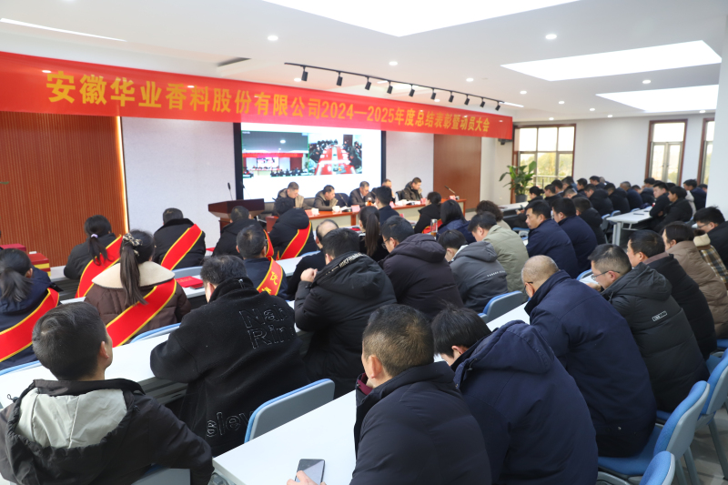2月6日,華業香料2024-2025年度總結表彰暨動員大會在潛山總部舉行。公司在潛董事會成員出席會議,未當班的一線員工及全體行政人員參加會議,合肥公司通過視頻連線參加會議。會議由公司董事、黨總支書記汪民富主持。